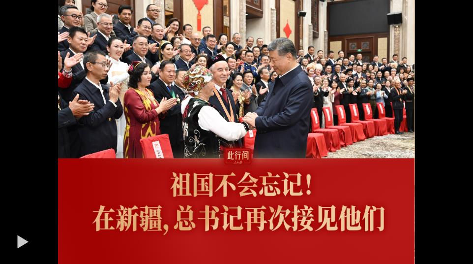 習近平23日下午接見新疆各族各界代表。代表中,我們發現了這4位,他們是“七一勛章”獲得者魏德友、“七一勛章”獲得者買買提江·吾買爾、“人民楷?!辈既悻敽埂っ斩?、“人民衛士”巴依卡·凱力迪別克。習近平總書記微笑著同他們親切握手。