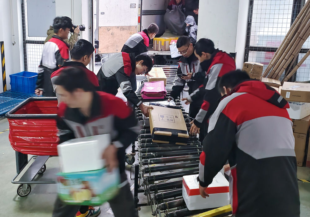 看望仍在工作的快遞員