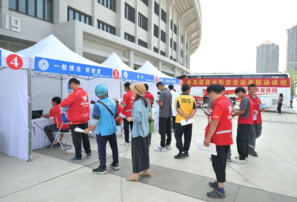 2024年6月13日,中華全國總工會在北京工人體育場舉辦新就業形態勞動者移動體檢專項工作啟動儀式,現場為數百名貨車司機、網約車司機、快遞員、外賣配送員等提供內外科、生化、心電、超聲等項目檢查。2024年,各級工會為全國超過50萬名新就業形態勞動者提供移動體檢服務,建立新就業形態勞動者職業健康檔案庫。