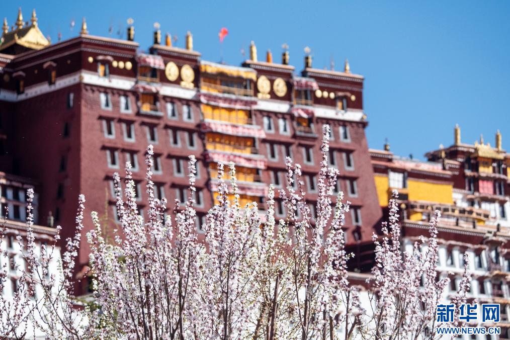 4月6日,西藏拉薩布達拉宮腳下春花綻放,與布達拉宮相互映襯。
