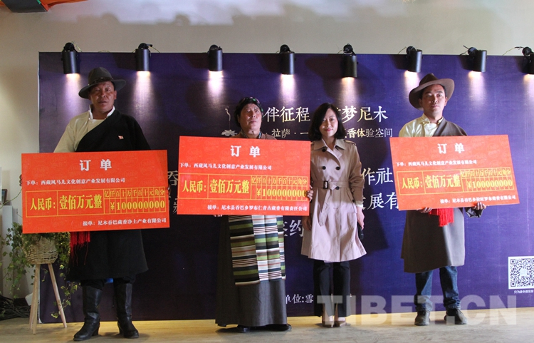 圖為三家尼木藏香專業合作社各從風馬兒文創獲得100萬元訂單。