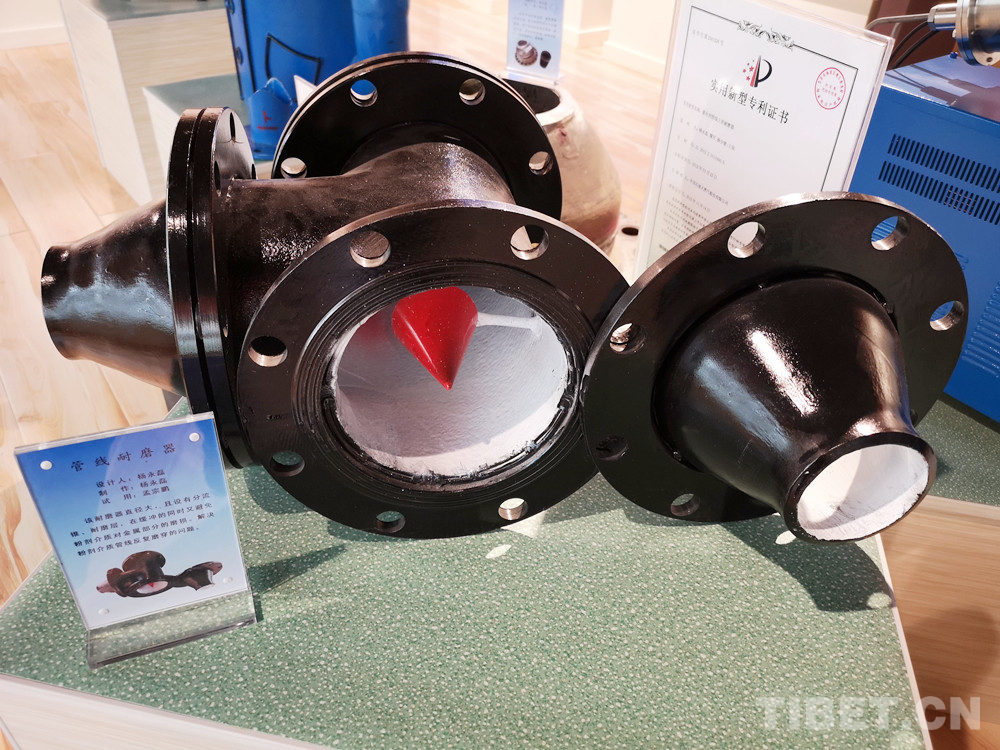 圖為楊永磊設計的管線耐磨器,直徑大,且設有分流錐、耐磨層,解決了粉劑介質管線反復磨穿的問題 攝影:李元梅