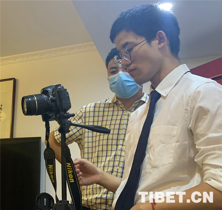 圖為中國西藏網記者正在準備連線采訪