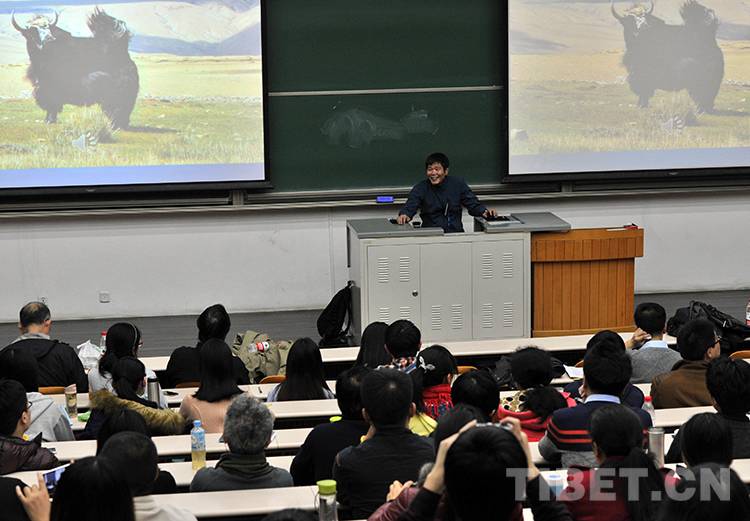 這是吳雨初在北京大學作“牦牛走進博物館”專題講座(唐召明2015年3月13日攝)