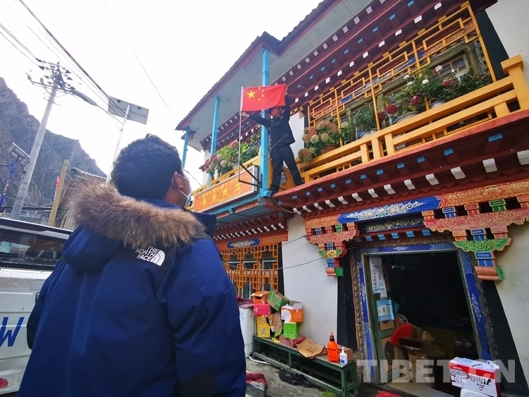 “老奶奶,我幫咱們家把國旗掛到門口最醒目的地方……”說著,林芝邊境管理支隊金東邊境派出所民警楊子拿著紅旗走向了卓瑪拉姆老人家門口,在老人家門口插上了耀眼的五星紅旗。