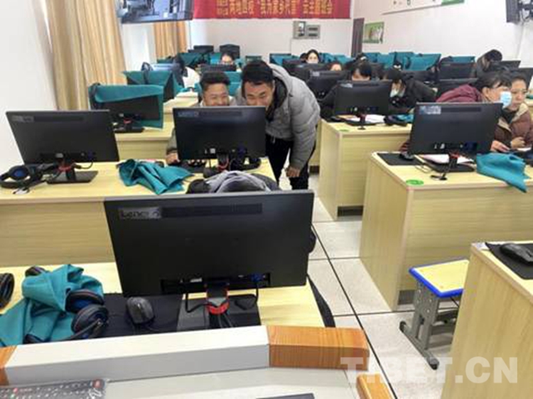 圖為西藏自治區那曲市比如縣達塘鄉的學生家長們和浙江省紹興市上虞區的學生家長們一起通過互聯網開“我為家鄉代言”云主題班會 攝影:次仁達吉