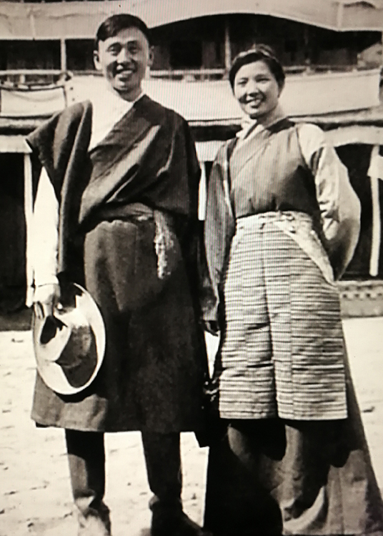 這是盛瑞玲與丈夫李正大在那曲地區工作時,著藏裝拍照留念(唐召明提供,1964年攝)