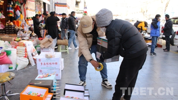 中國西藏網訊 臨近藏歷新年,家家戶戶忙于置辦年貨。2月10日,記者來到位于西藏拉薩市的八廓商城、沖賽康、雪新村等各年貨市場,各店鋪早已備好精品年貨,前來選購的市民絡繹不絕,現場十分熱鬧。商品琳瑯滿目,切瑪盒、香布、德嘎等藏歷新年吉祥物“一家子”更是藏族群眾每年家家必備的年貨。(中國西藏網 記者/德吉卓瑪 次旦拉姆)