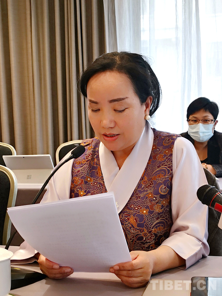 圖為全國政協委員、西藏藏醫藥大學副教授明吉措姆發言 圖片由受訪者提供