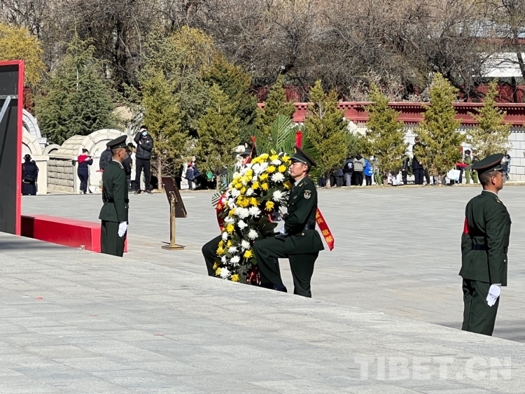 圖為軍警代表向革命先烈敬獻鮮花 攝影:德吉卓瑪