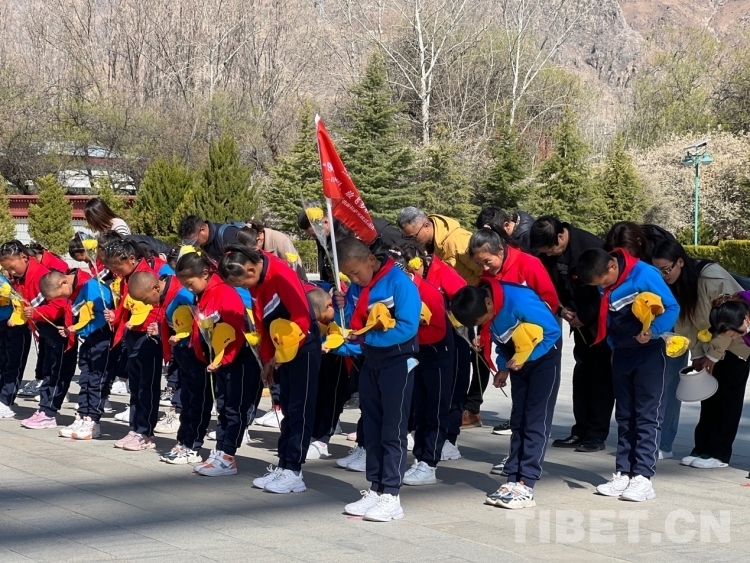 中國西藏網訊 4月12日上午,由西藏煙草駐日喀則市昂仁縣第十一批駐村工作隊、江蘇商會黨委、冬日暖陽愛心公益組織承辦的“領略非凡世界、放飛多彩夢想”公益活動工作組帶領來自西藏日喀則市昂仁縣多白鄉的30名小學生來到位于拉薩市西郊的拉薩烈士陵園緬懷革命先烈。