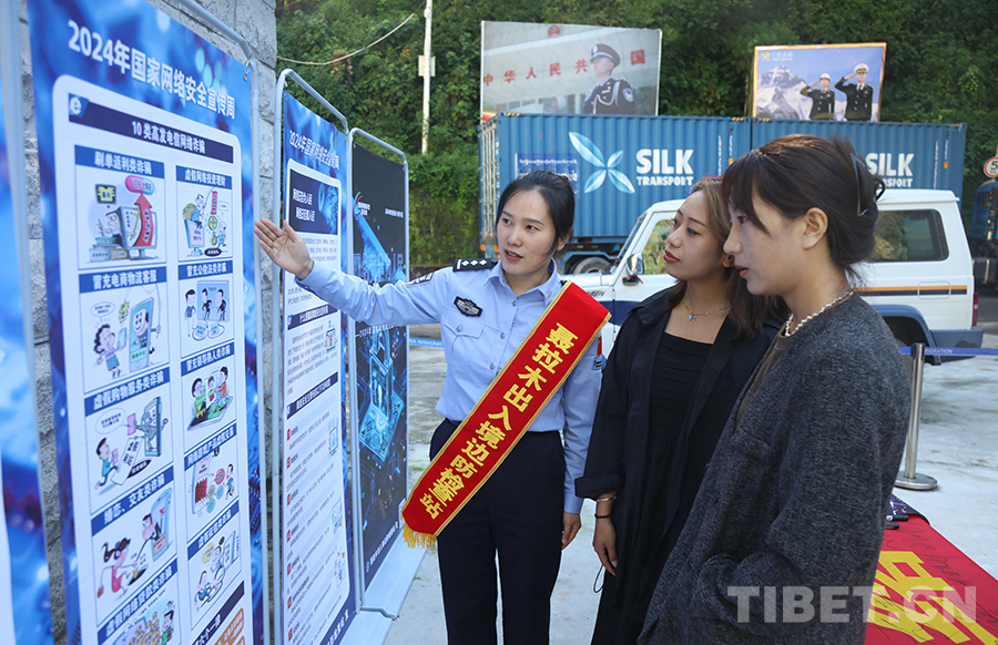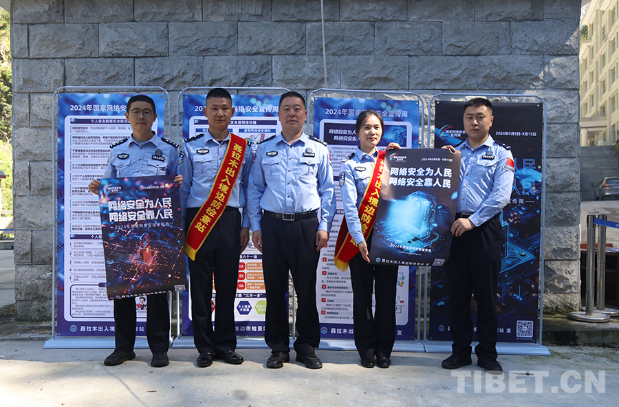 圖為聶拉木出入境邊防檢查站移民管理警察開展網絡安全周集中宣傳活動 攝影:高榮元
