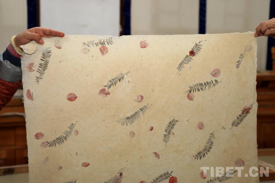 漸漸地,這位吃著“百家飯”長大的傳承人也有了自己的造紙門道:制作繁復,就走定制線路;銷路不好,就去取長補短。從單純的白紙到鮮花紙、褶皺工藝紙,從筆記本、畫冊、唐卡畫紙到請帖框、燈籠,加里和徒弟們依托傳統工藝,開發推廣出不少兼具實用性和觀賞性的紙藝制品。