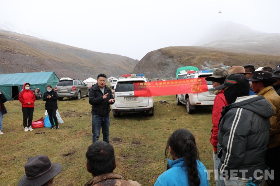 圖為2022年6月14日,昌都市“雪蓮花”女童保護聯盟深入丁青縣蟲草采挖點開展法治巡講活動