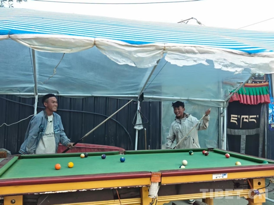 圖為森嘎村的年輕人在享受臺(tái)球的樂趣