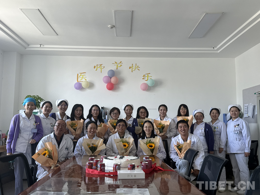 圖為馬玉超在西藏自治區人民醫院慶祝醫師節
