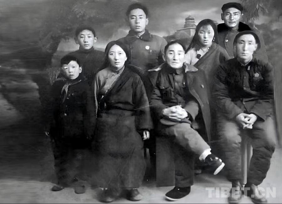 圖為米福堂全家福(1962年),前排左三為米福堂,左二為夫人布莎西拉措(布莎瓊萊之妹,為布莎瓊萊去世后續(xù)娶),左四為長子旺斗昂布,后排左一為五子土登嘉措,左二為次子米扎西,左三為長女德慶,左四為三子久甫。