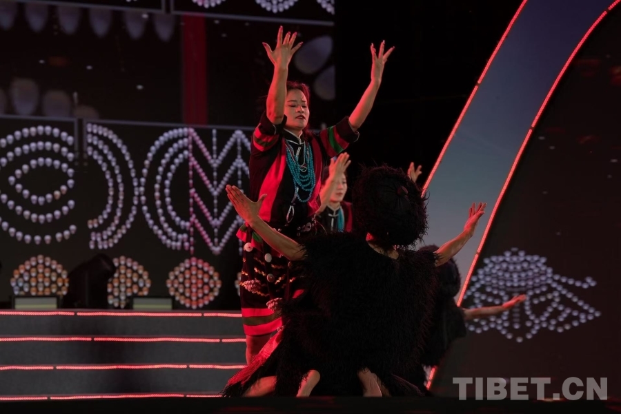 在開(kāi)幕式文藝晚會(huì)上,墨脫縣藝術(shù)團(tuán)作為晚會(huì)的“文化使者”,通過(guò)五支特色舞蹈,將墨脫的民族文化與精神風(fēng)貌展現(xiàn)得淋漓盡致:開(kāi)場(chǎng)舞《相約墨脫》中,舞者身著門(mén)巴族、珞巴族服飾,激昂的舞步與悠揚(yáng)旋律交織,瞬間將觀眾帶入“蓮花秘境”的冬日幻境;《靈動(dòng)門(mén)珞》以肢體語(yǔ)言為筆,生動(dòng)重現(xiàn)門(mén)巴族織錦時(shí)的細(xì)膩指尖、珞巴族狩獵時(shí)的矯健身姿,剛?cè)岵?jì)的動(dòng)作勾勒出兩個(gè)民族千年生活圖景,贏得現(xiàn)場(chǎng)掌聲雷動(dòng)。