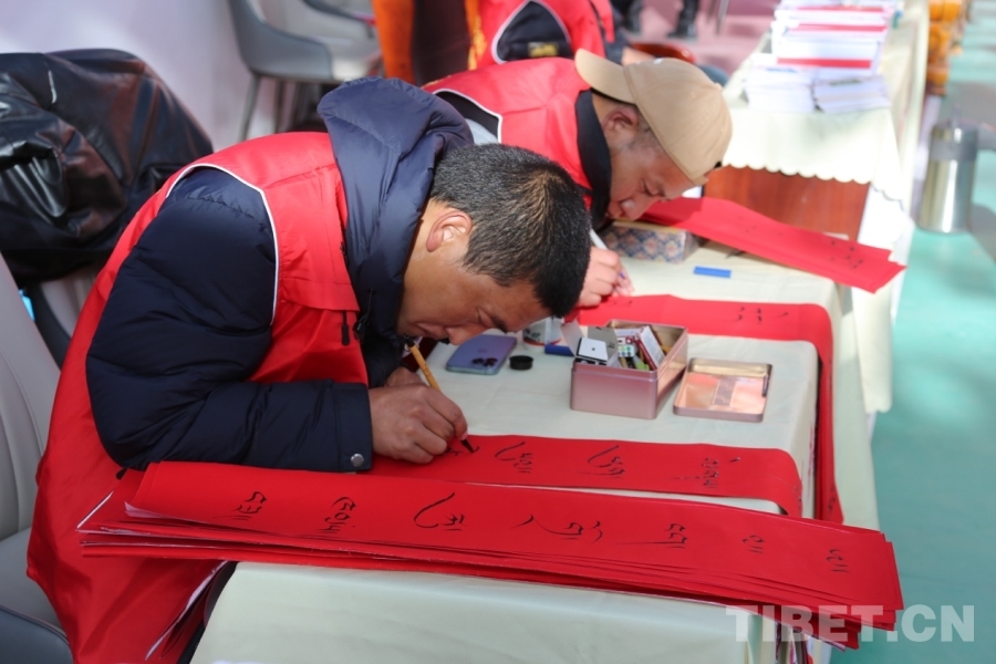 溫暖物資發(fā)放區(qū),保暖衣物、生活用品、學(xué)習(xí)用品等陸續(xù)送到群眾手中。書法老師現(xiàn)場揮毫,書寫一幅幅寓意吉祥的藏文春聯(lián)贈予鄉(xiāng)親,為即將到來的新春增添濃濃年味與文化氣息。