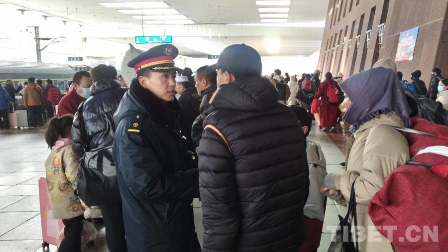 在拉薩站,一提起強久桑布,同事們無不豎起大拇指,言語間滿是敬佩與信賴。他是站臺上一道堅實的風景線,也是很多年輕職工心中“靠譜”的代名詞。強久桑布是一名80后客運值班員,2006年參加工作的他,今年是他的第19個春運。