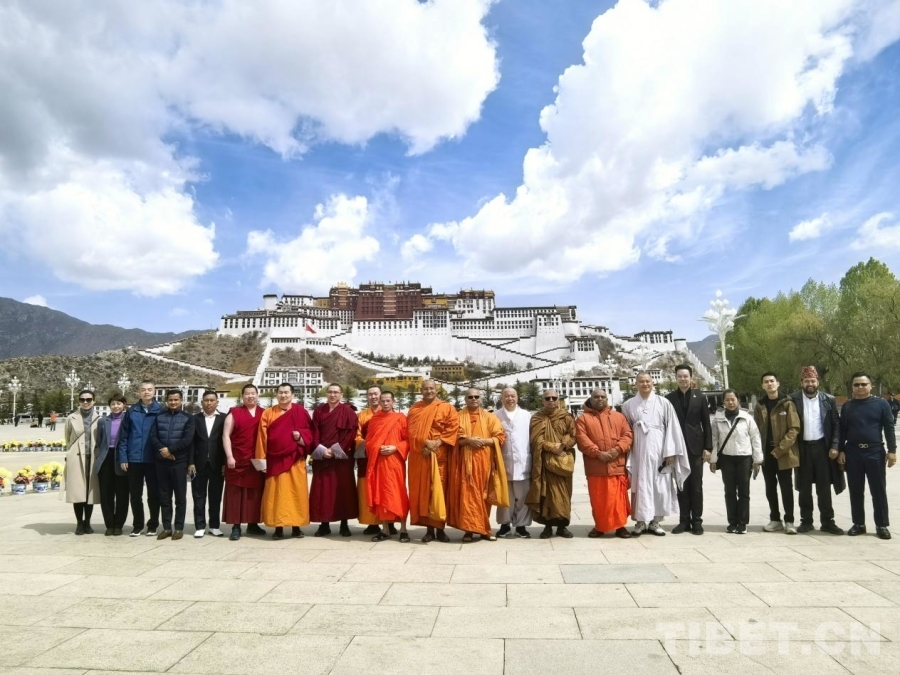4月22日,多國宗教界人士在布達拉宮廣場合影留念 攝影:王淑