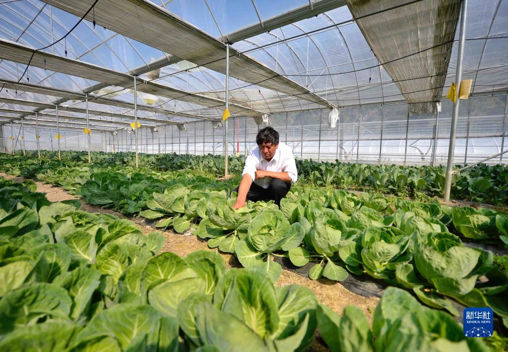 10月25日,村民在位于西地村的生態農業示范基地內查看蔬菜生長情況。新華社記者 劉坤 攝