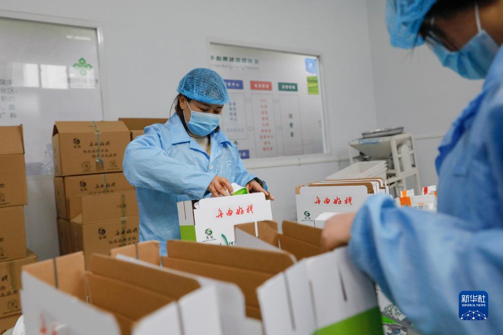 11月15日,在舟曲縣電子商務(wù)公共服務(wù)中心,工作人員在包裝農(nóng)產(chǎn)品。新華社記者 方欣 攝
