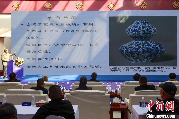 圖為臺灣世界宗教博物館榮譽館長陳國寧交流發言。中新社記者 薛蒂 攝