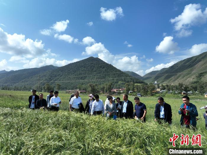 2023年8月,農業專家們調研尕旦木草公司的青稞種植基地。(資料圖)受訪者供圖