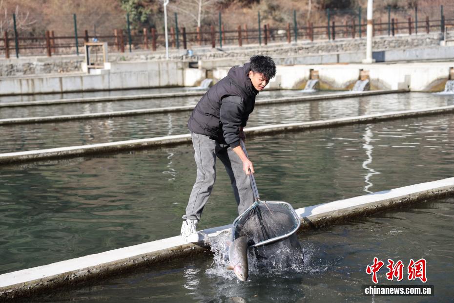 12月26日,位于四川省阿壩州理縣薛城鎮(zhèn)甲米村的高原特色冷水魚(yú)養(yǎng)殖基地內(nèi),工作人員查看鱒魚(yú)生長(zhǎng)情況。該基地處于海拔超2000米的孟屯河畔,水源來(lái)自高海拔地區(qū)的雪山融水,年均水溫9-10℃,目前養(yǎng)殖有鱒魚(yú)、黃河魚(yú)、雅魚(yú)等10萬(wàn)余尾。基地將優(yōu)良生態(tài)資源與現(xiàn)代養(yǎng)殖技術(shù)結(jié)合,通過(guò)“魚(yú)經(jīng)濟(jì)”發(fā)展,豐富業(yè)態(tài)、增加就業(yè)、農(nóng)旅融合壯大了該村集體經(jīng)濟(jì),同時(shí)拓寬了村民增收致富渠道。