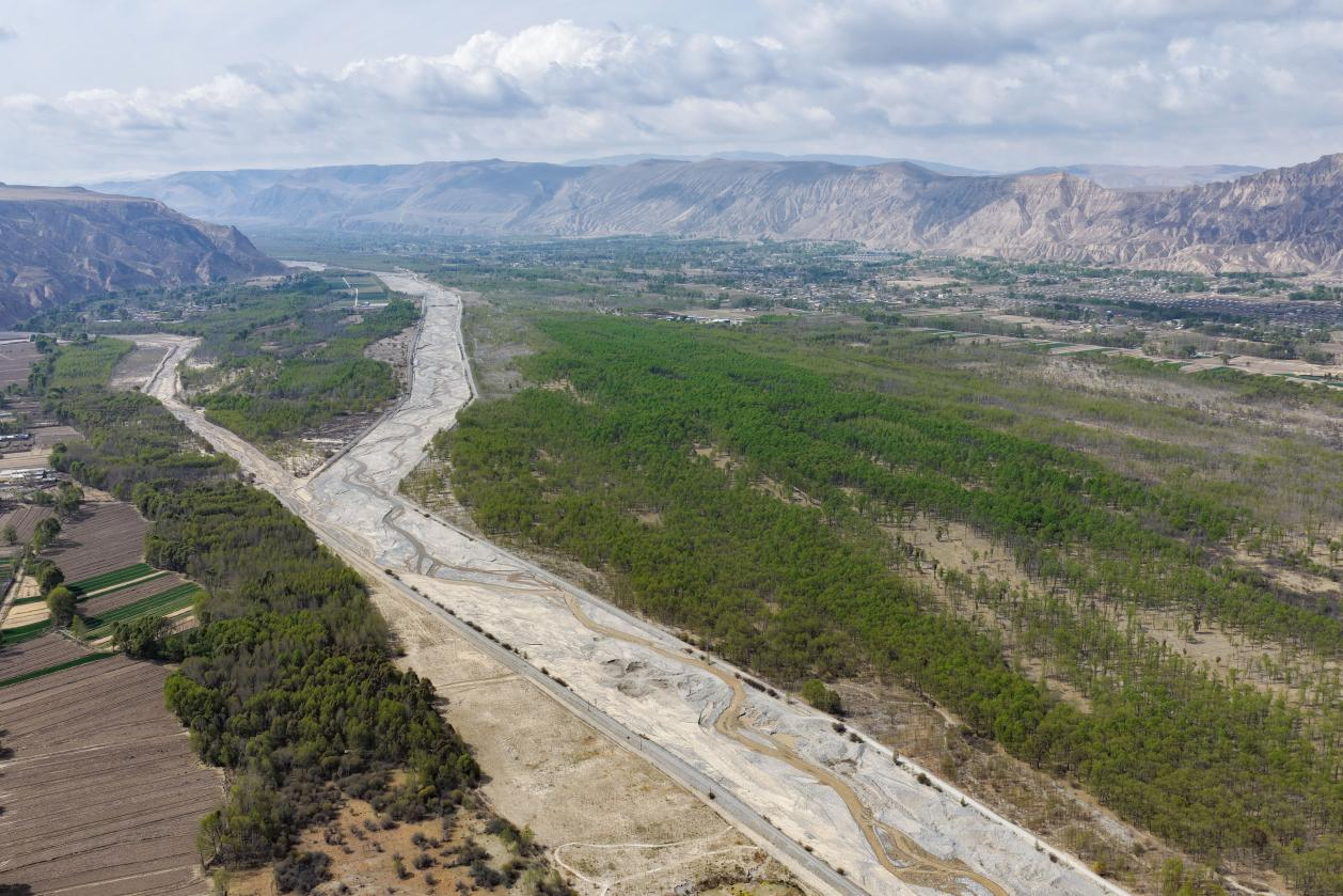 “清清黃河”第三站,記者來到青海省海南藏族自治州貴德縣。黃河自西向東貫穿縣城。西出龍羊峽、東入松巴峽,兩大峽谷間的寬谷盆地,造就了平緩開闊的河面。黃河在此一改洶涌,變得溫婉寧靜,加之澄綠色的水面與兩岸的丹霞、梨花,構成絕美的黃河景觀。