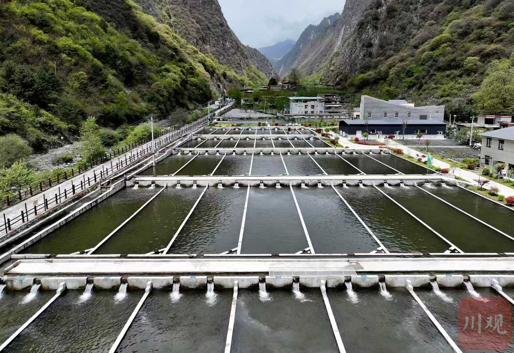 “這條魚有8斤多重,市場價在400元以上。”4月27日,在四川省阿壩藏族羌族自治州理縣薛城鎮(zhèn)甲米村山溝里的高原特色冷水魚產(chǎn)業(yè)基地,管理人員陳麗娜從梯田般的魚池里,打撈出一條虹鱒,“今年第一批成品魚將于近期出售,甲米村的養(yǎng)殖基地能出貨9萬斤左右。目前已經(jīng)拿到了幾筆訂單。”