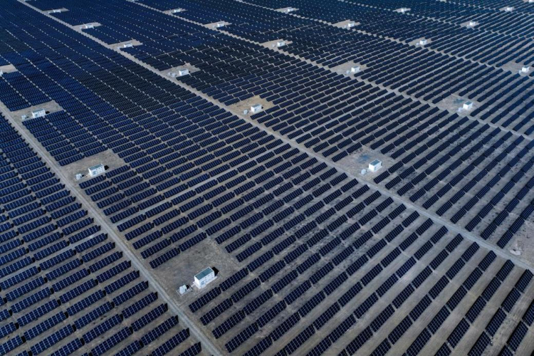 青海省海南藏族自治州共和縣塔拉灘,數百萬張光伏板漸次鋪展,組成全球裝機容量最大的光伏發電園區。