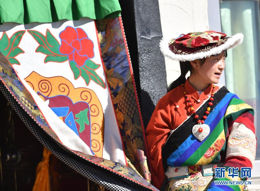 2月12日在藏北當(dāng)雄縣拍攝的穿著五彩藏袍的牧區(qū)女子。新華社記者 覺果 攝