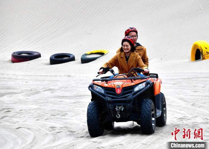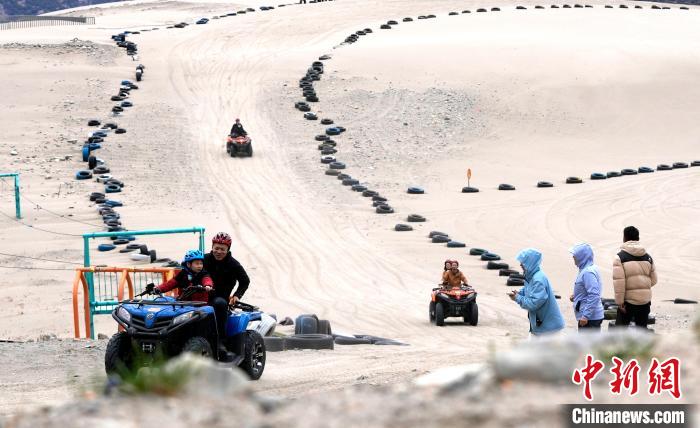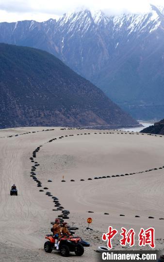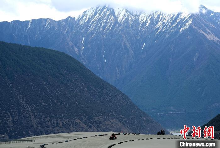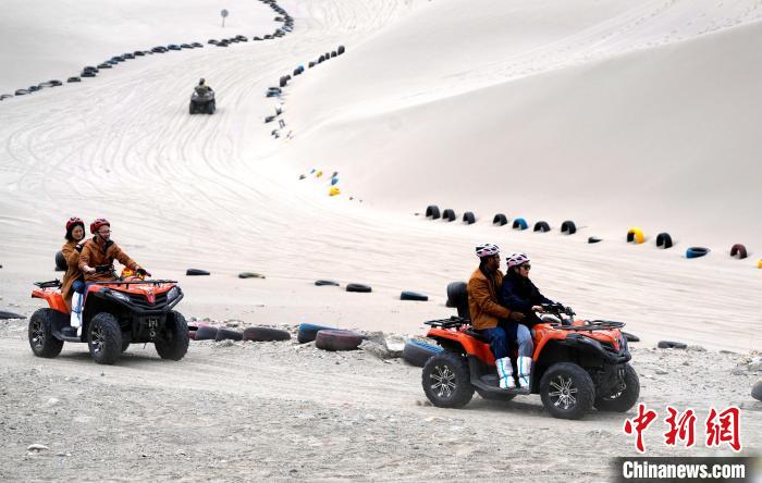 4月4日,游客在西藏米林市丹娘佛掌沙丘景點體驗沙灘車。當日是清明假期第一天,眾多游客在該地游玩,樂享美好春光。丹娘佛掌沙丘位于米林市丹娘鄉,因沙丘倒影在雅魯藏布江中形成雙手合十的形狀,故被譽為佛掌沙丘。中新社記者 李林 攝