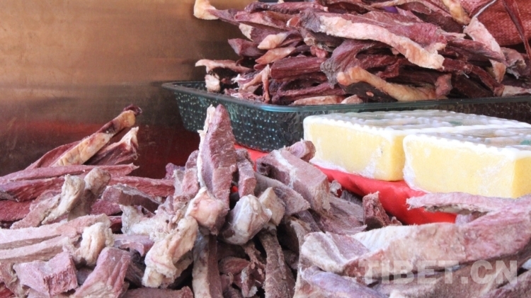 圖為年貨市場里的風干牛肉 攝影:德吉卓瑪