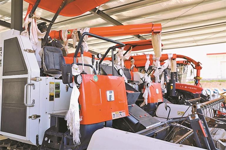 圖為停放在克日村機械庫里的現代化農機。記者 尼瑪扎西 攝