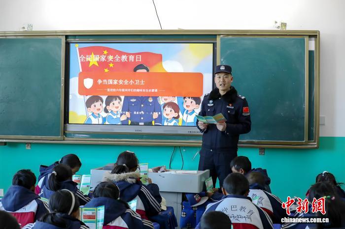 圖為里孜邊檢站民警走進課堂,開展“全民國家安全·爭做國家安全小衛士”主題活動。劉海東 攝
