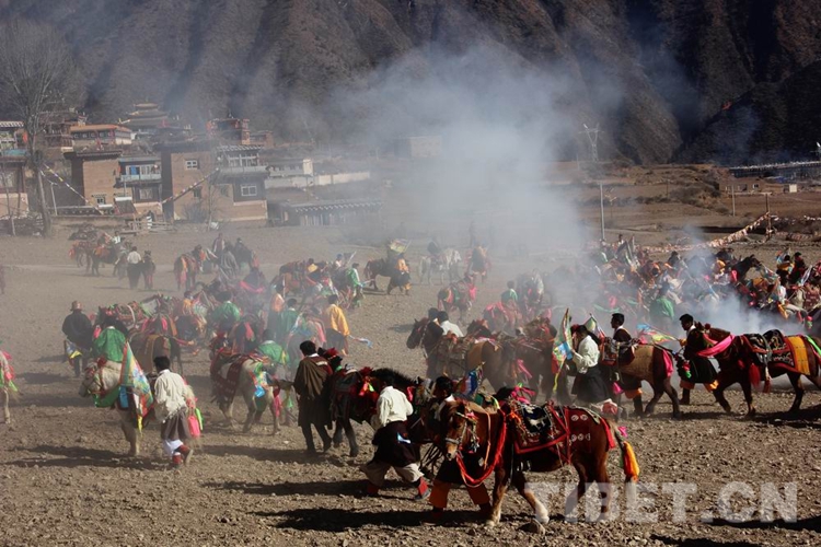 圖為四川省甘孜藏族自治州新龍縣群眾歡度“藏歷十三節” 攝影:拉加當周