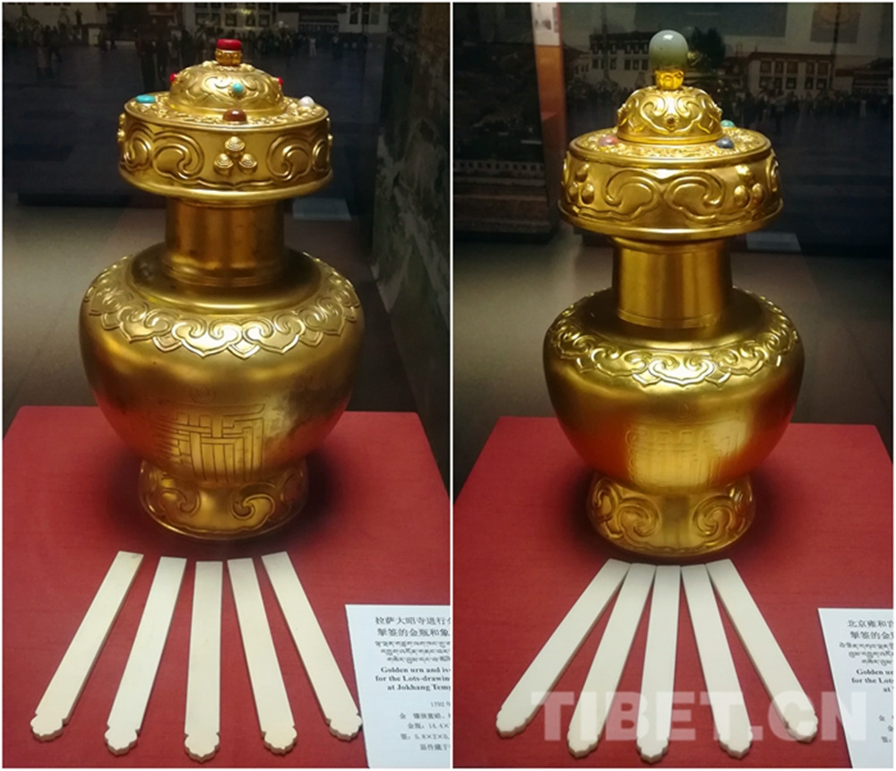 圖左為大昭寺進行金瓶掣簽的金瓶和象牙簽(復制品),圖右為雍和宮進行金瓶掣簽的金瓶和象牙簽(復制品)攝影:李元梅
