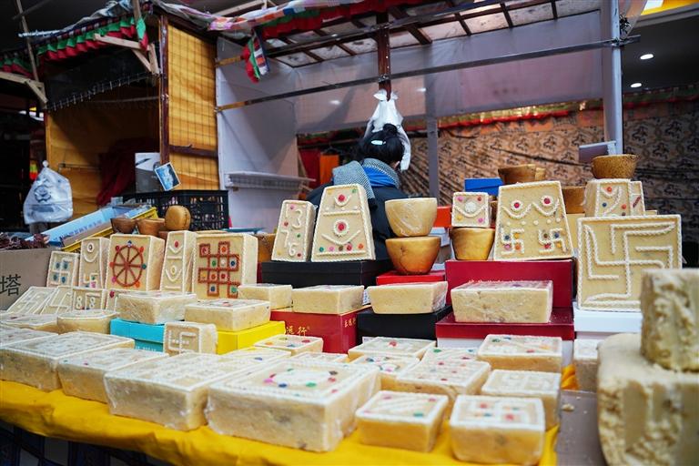 手持羅薩梅朵的小孩在大街小巷里歡笑;腳邊放置著大量年貨的顧客正和老板磋商著手中切瑪盒的價格;阿佳一手提著采購好的年貨,一手牽著孩子稚嫩的小手……在藏歷新年來臨之際,這座千年古城被喜氣洋洋的人群交織出了濃濃的煙火氣息。(圖/記者 阿旺尼瑪)