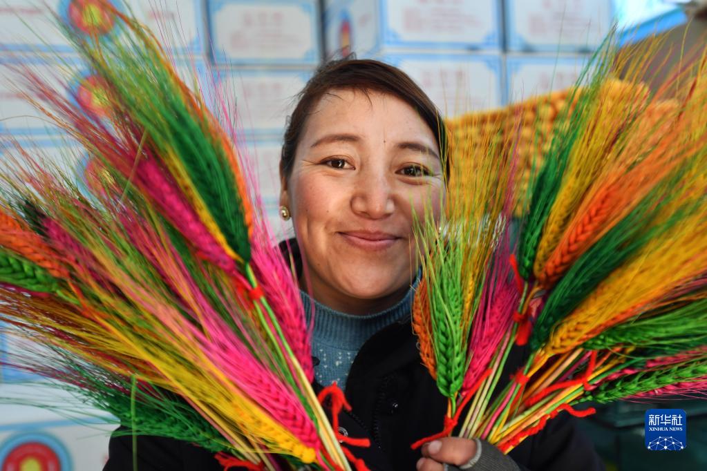 今年是次卓瑪在八廓商城年貨攤位擺攤的第8年,隨著老顧客的不斷增多,她每年對自己制作“羅薩美朵”的要求也越來越高。“麥穗的飽滿度和染色均勻度都需要精心選、細(xì)心染,雖然每把只賣5元,但一年也就售賣一次。”次卓瑪質(zhì)樸地說。