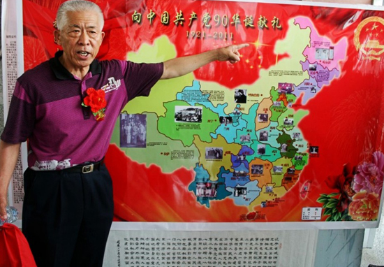 毛澤東圖片收藏者梁國忠講述自制的開國領(lǐng)袖毛澤東主席《祖國大地處處有您的足跡》的中國地圖。