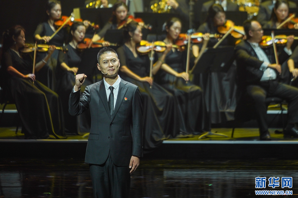 7月17日晚上,青年演員侯京健在講述《信仰之光照亮征程》。新華網 肖和勇 攝