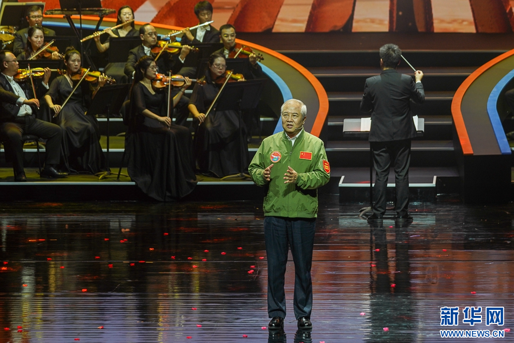 這是7月17日晚上拍攝到的晚會尾聲,交響合唱《人民至上》。新華網 肖和勇 攝