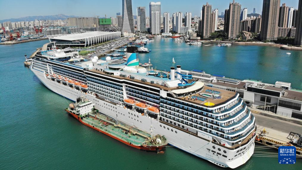 巴哈馬籍“愛(ài)達(dá)·地中?!碧?hào)郵輪靠泊山東青島國(guó)際郵輪母港(6月27日攝,無(wú)人機(jī)照片)。