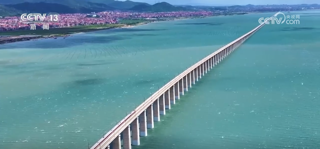 這是我國首條設(shè)計時速350公里的跨海高鐵——福廈高鐵湄洲灣跨海大橋。碧波之上,大橋氣勢恢宏,連接兩岸。在跨海大橋上行車,受海上風(fēng)力影響很大,通過這樣的路段通常需要減速慢行。但福廈高鐵實現(xiàn)了“跨海過橋不減速”,在不設(shè)風(fēng)屏障等防風(fēng)措施下,列車可在8級大風(fēng)下以時速350公里速度行駛。國慶假期,福廈高鐵加開195趟列車,滿足旅客出行需求。