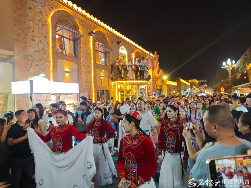 游客在阿勒屯古街觀看歌舞表演。石榴云/新疆日?qǐng)?bào)記者 宋海波攝