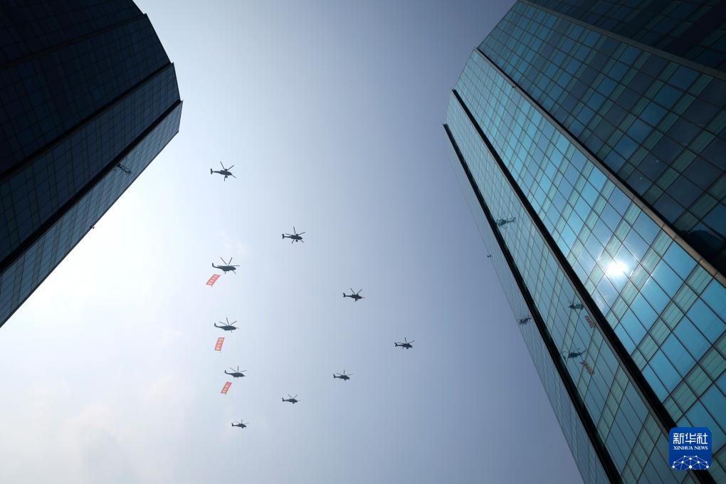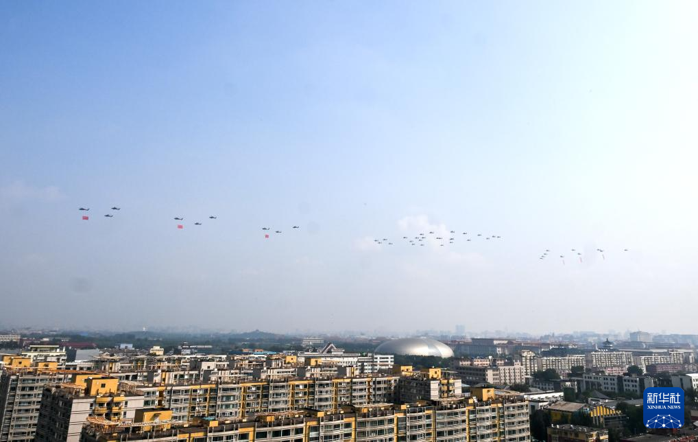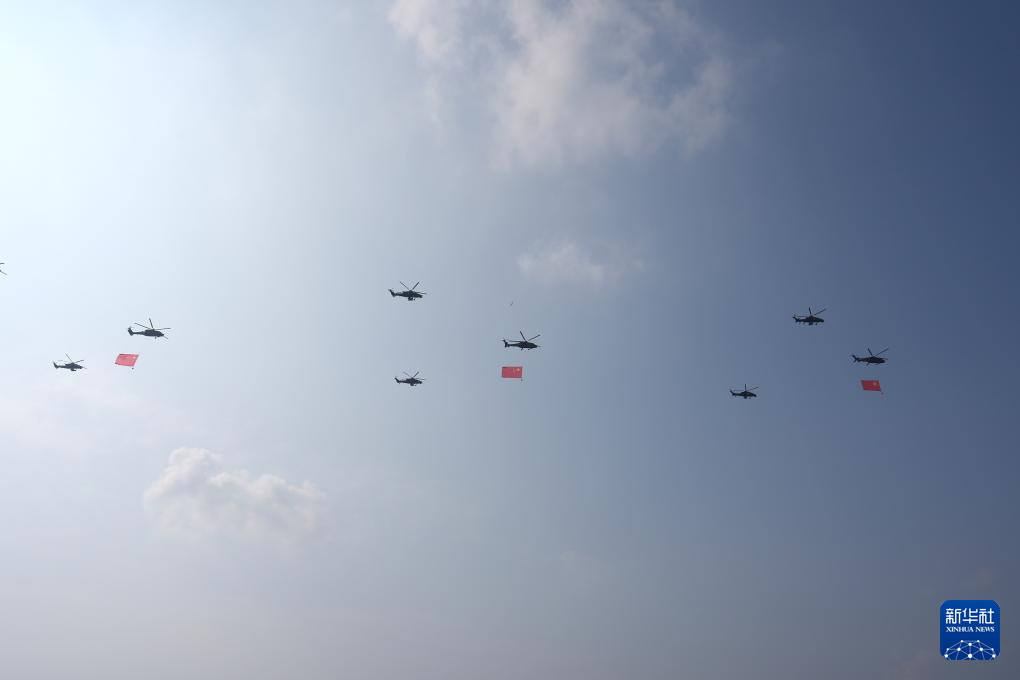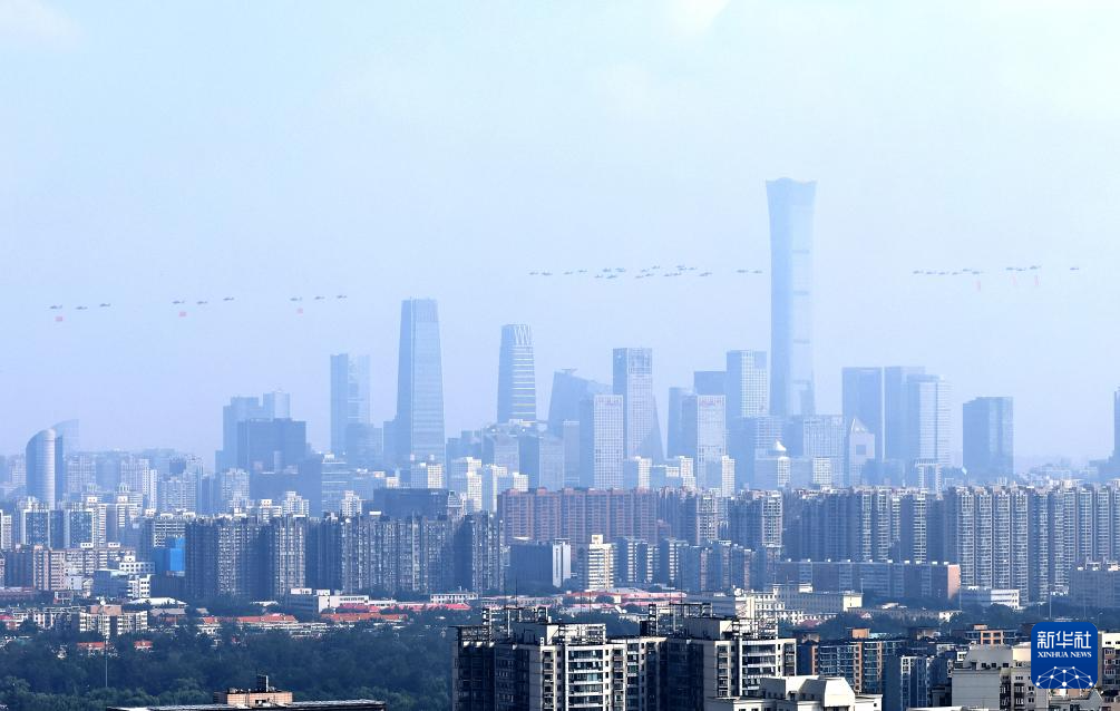 9月3日,紀念中國人民抗日戰爭暨世界反法西斯戰爭勝利80周年大會在北京隆重舉行。這是空中護旗梯隊。