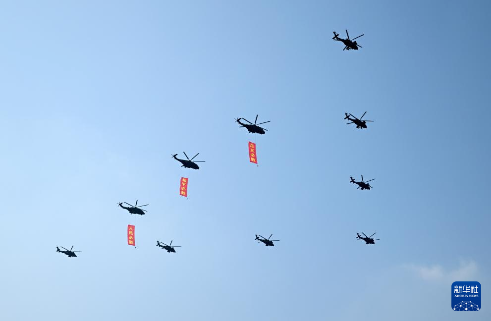 9月3日,紀念中國人民抗日戰爭暨世界反法西斯戰爭勝利80周年大會在北京隆重舉行。這是空中護旗梯隊通過天安門廣場。